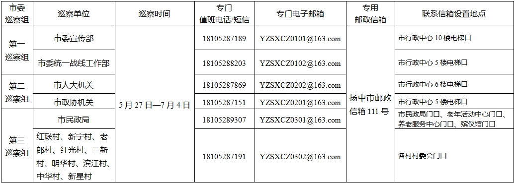 巡察期间(2025年5月27日—2025年7月4日),市委各巡察组设专门值班电话、接收短信手机、专门电子邮箱和专用邮政信箱,并公布“江洲e巡”微信二维码。电话受理时间为工作日9:00-18:00(具体亿兆体育的联系方式见附表)。根据巡察工作职责和有关规定,巡察组主要受理涉及被巡察单位领导班子及其成员、市委管理的其他干部以及下一级主要负责人、相关重点岗位干部(含已退休、已调离)的问题反映。其他不属于巡察受理范围的信访问题,将按规定转交被巡察单位和有关部门认真处理。市委巡察组信访受理截止日期为7月2日。